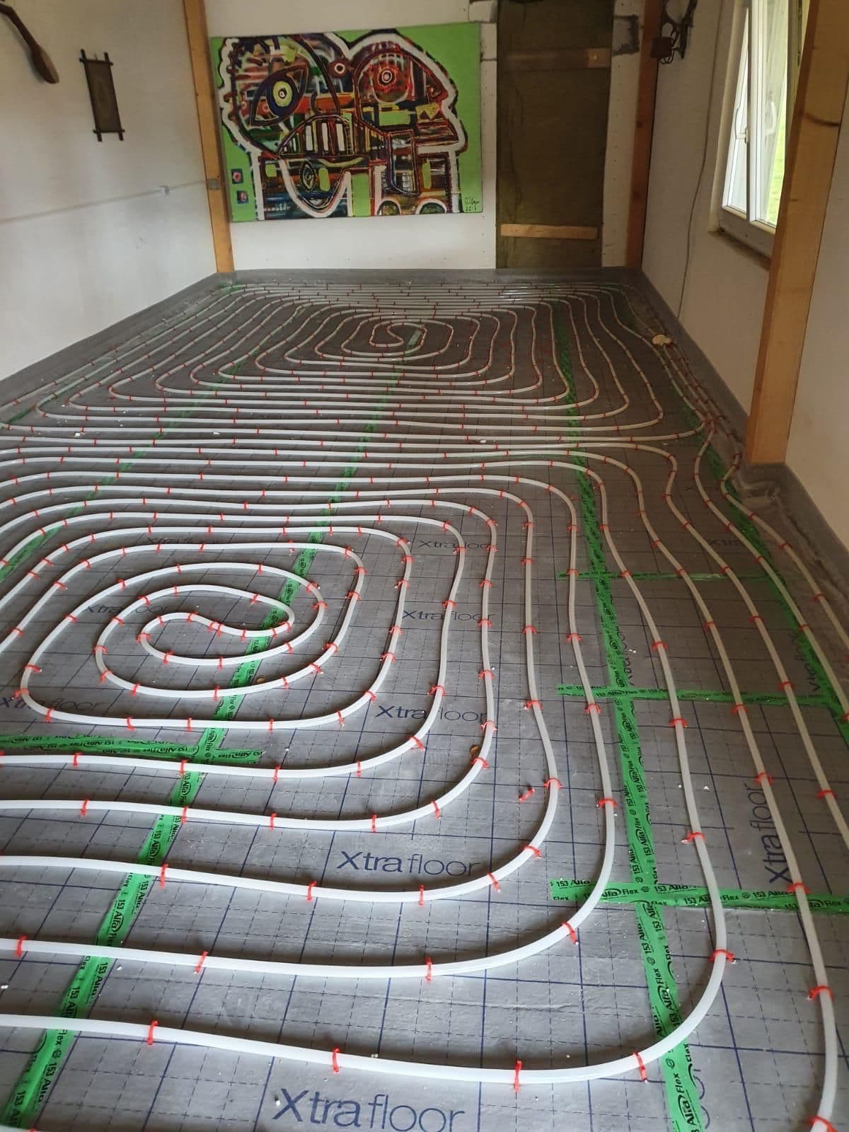 Fachgerechte Verlegung von Fußbodenheizungen im Neubau. Gleichmäßige Wärmeverteilung für maximalen Komfort und Energieeffizienz.